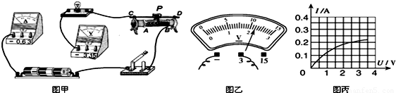 (3)排除故障后,移动变阻器滑片P,当电压表示数为2.4V时,电流表示数如图乙所示,______A,则待测电阻的阻值为______Ω.