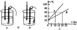 | 乙杯水温/℃ | 25 | 28 | 31 | 34 | 37 | 40 | 43 | 45 | 47 | 49 | 51 |
