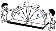 如图所示为研究光的反射规律的实验装置,其中O点为入射点,ON为法线,面板上每一格对应的角度均为10°.实验过程中,调整入射光的入射角度,当入射光沿AO方向入射时,反射光沿OB方向射出;当入射光沿CO方向入射时,反射光沿OD方向射出;当入射光沿EO方向入射时,反射光沿OF方向射出;请填写下列表格.