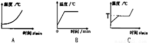 (5)在探究结束后,小琴根据实验数据绘制出了这三种物质的温度和时间关系的曲线,如右图所示.其中图C反映的是______的温度随时间变化关系,图中温度T=______℃.