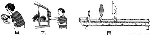 (2)他猜想:凸透镜成像的大小可能与蜡烛到透镜的距离有关.于是,他在如图丙所示的光具座上,不断改变蜡烛到透镜的距离,并移动光屏进行实验,所获得的实验数据如下表所示: