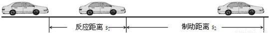 | 原行驶速度v/km?h-1 | 反应距离s1/m | 制动距离s2/m |