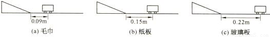 这个观点是否科学呢?一组同学在了解了伽利略的研究后也设计了如图所示的实验进行探究,分别让同一小车从同一斜面同一高度滑下,在三个不同水平表面上滑行的距离不同,请你根据图示的实验现象填写表格.
