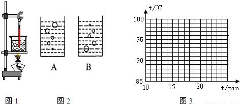 (1)某小组观察到沸腾前和沸腾时水中气泡上升过程中的两种情况,如图2中A、B所示,则图中______是水沸腾前的情况,图中______是水沸腾时的情况;