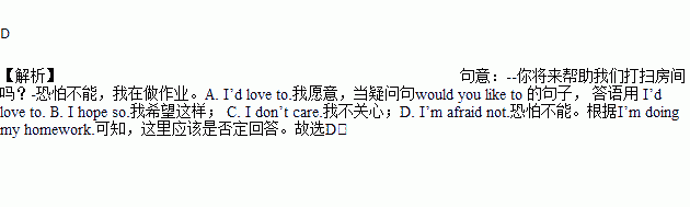 A. I’d love to. B. I hope so. C. I don’t care. D. I’m afraid not.