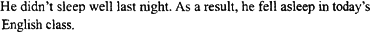 他昨晚没睡好。结果,他在今天的英语课上睡着了。