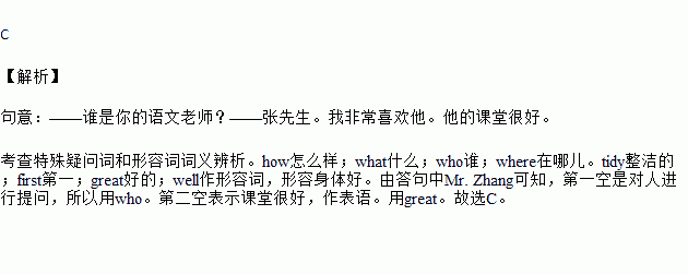 A.How, tidy B.What, first C.Who, great D.Where, well