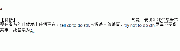 A 【解析】句意:老师叫我们尽量不要在看鸟的时候发出任何声音。tell sb.to do sth.告诉某人做某事,try not to do sth.尽量不要做某事,故答案为A。People may have many different hobbies during their life.When we are very young,we usually play with toys.When we get older,we may go out for a walk.Now,let’s look at these children’s hobbies.