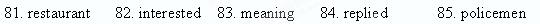 One day, a father and his little son had dinner in a (81) . The father drank a lot of wine. After dinner, they were going home. At this age, the boy was (82) in all kinds of things and was always asking questions. Now, he asked, “What’s the (83) of the word ‘Drunk’ dad?” “Well, my son,” his father (84) , “look, there are standing two (85) . If I regard the two policemen as four, then I am drunk.” “But, Dad,” the boy said, “There’s only ONE policeman!”