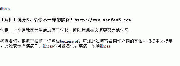 I was absent from school because of i_________ (疾病) last month, so I have to study harder now.