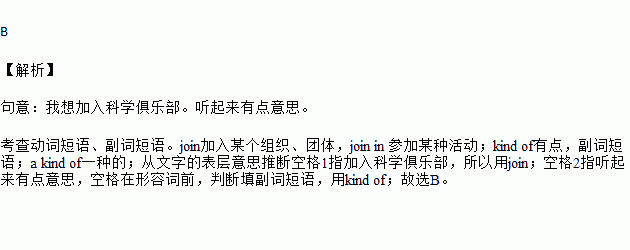A.join in; kind of B.join; kind of; C.join; a kind of D.join in; kind of