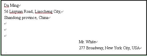 根据表中所给的内容设计一个英文信封。| 收件人 | 姓名 | Mr. White |