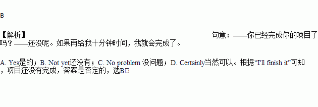 A. Yes B. Not yet C. No problem D. Certainly