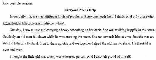 Did you get any help from others? Or did you give any help to people when they needed? Tell your story of getting help or giving help. Your story should be organized like this:Part l: Tell us when, where, who and how.
