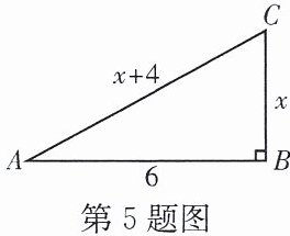 解:在Rt△ABC中,∠B=90°,AB=6,BC=x,AC=x+4。