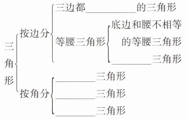 三角形按边分,三边都不相等的三角形是不等边三角形;等腰三角形包括底边和腰不相等的等腰三角形以及三边都相等的等边三角形(等边三角形是特殊的等腰三角形)。按角分,三角形可分为锐角三角形(三个角都是锐角)、直角三角形(有一个角是直角)、钝角三角形(有一个角是钝角)。