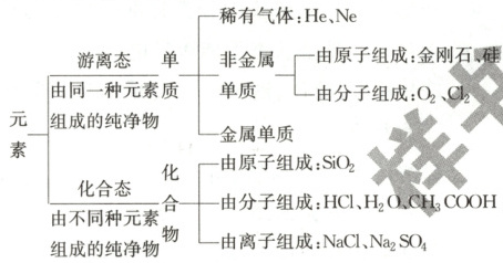 (1) 元素与物质的关系