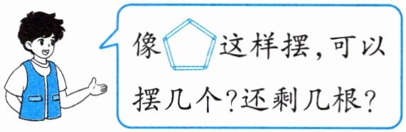 1. 第一个问题:用14根小棒摆五边形,每个五边形需要5根小棒。