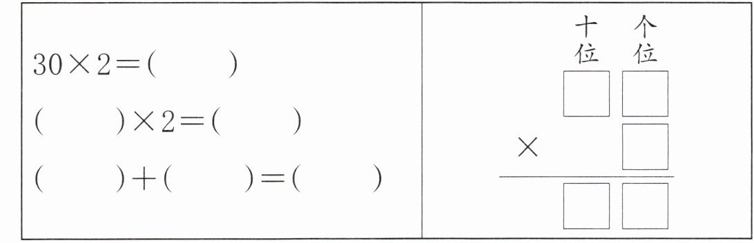 $30$处的方框填$30$,得数方框填$60$;