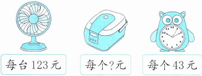 (2)妈妈买了2个闹钟和1台电风扇,一共多少元?