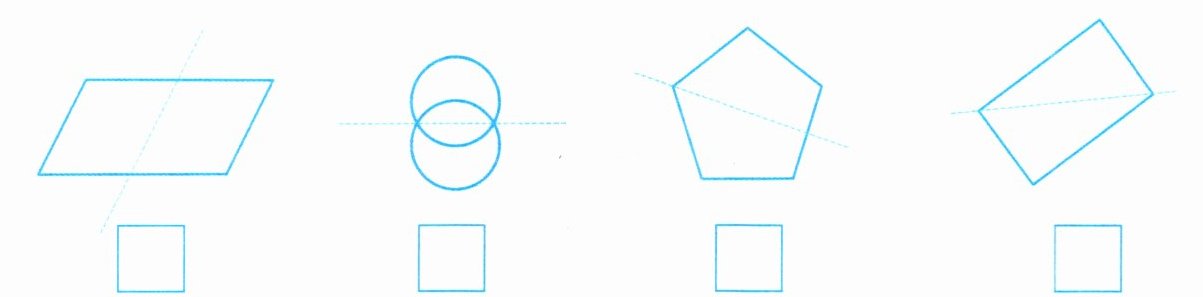 2. 下面哪些图形中的虚线是它的对称轴?在$□$里画“√”