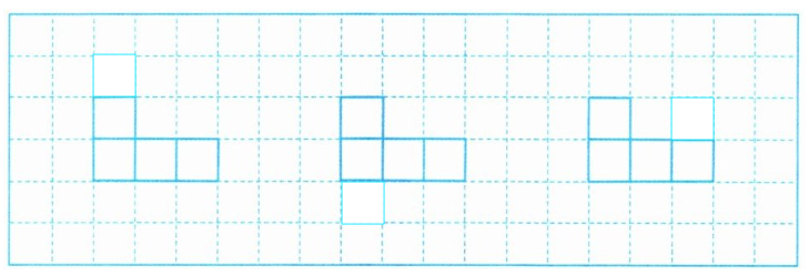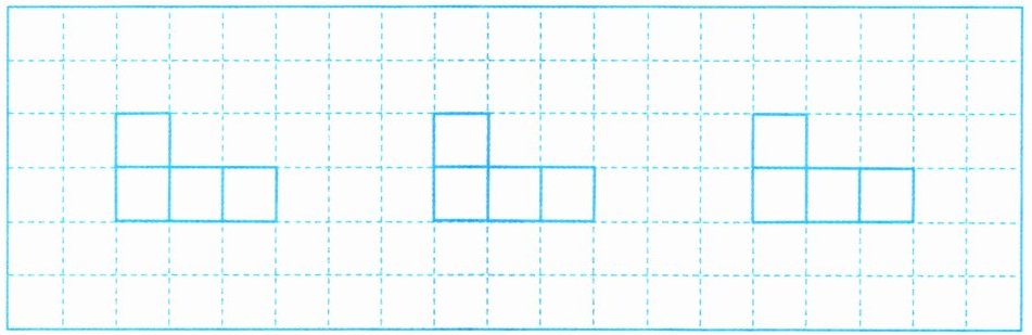 3. 请在下面的图形中再增加一个小正方形,使它变成轴对称图形。你有哪些不同的方法?