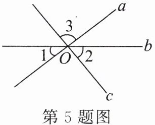 5. 如图,三条直线$a$,$b$,$c$交于点$O$,$∠ 1 = 37^{\circ}$,$∠ 2 = 53^{\circ}$,则$∠ 3 =$