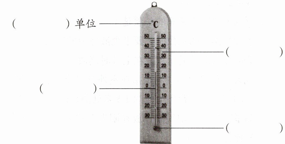 1. 你认识下面的气温计吗?填一填气温计各部分的名称。