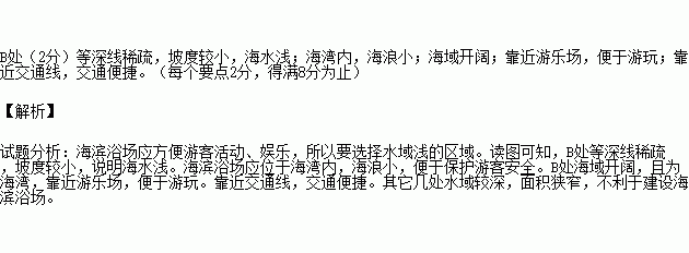 该城市为了开发滨海区域,准备建设一大型浴场,你认为A、B、C、D、E中最合适的是哪一处,并说明理由。