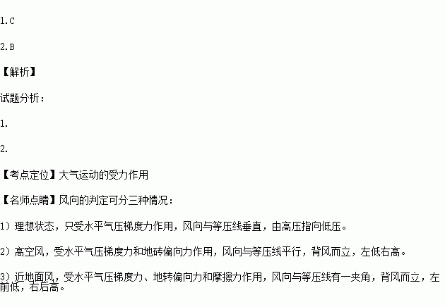 下图为气压场受力平衡时的风力,气压单位为百帕,回答下列问题