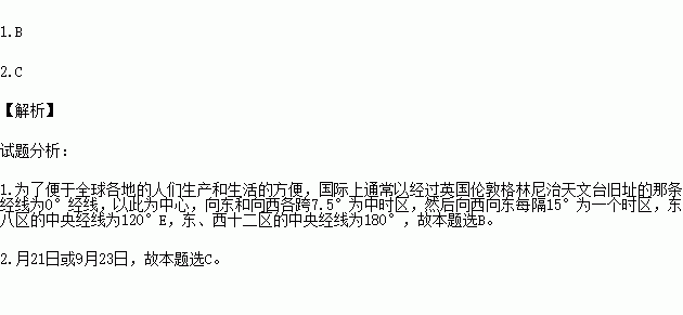 A.中时区的中央经线 B.东、西十二区的中央经线