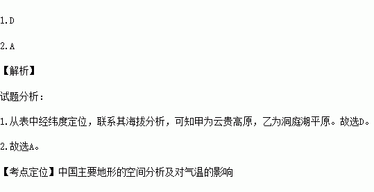 ¼×¡¢ÒÒÁ½µØ·Ö±ðλÓÚÎÒ¹úÁ½´ó²»Í¬µØÐÎÇøÖУ¬Çë¸ù¾ÝϱíËùÌṩµÄ¼×¡¢ÒÒÁ½µØµÄÏà¹Ø×ÊÁÏ£¬»Ø´ðÏÂÁÐÎÊÌâ¡£