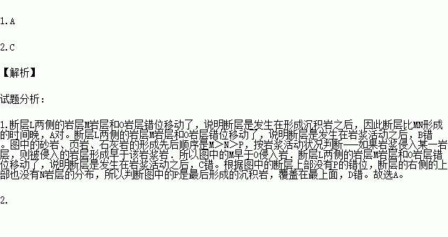 A.比N地层形成时间晚 B.与O地层形成时间同步