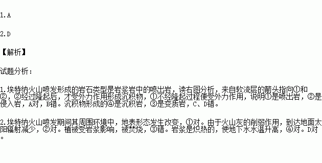 1.埃特纳火山喷发形成的岩石类型是右图中的