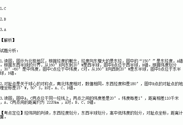 2.图中B点的对趾点(是地球同一直径的两个端点)的地理坐标是( )