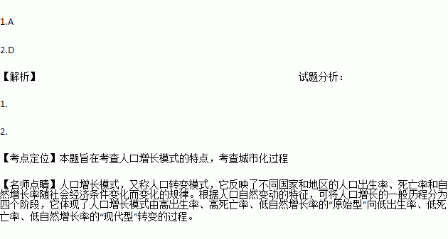 1.下列选项最符合“高出生率、低死亡率、高自然增长率”人口自然增长特点的