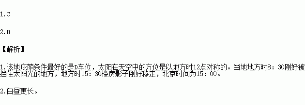 1.6月份某日天气晴好,胡先生8点(北京时间)将车停到当日庇荫条件最好的停车位,办公楼刚好为汽车挡住阳光,为确保在胡先生16时下班前爱车不被阳光暴晒,他( )