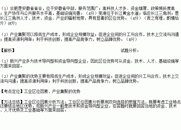 (2)分析安徽重视产业集聚基地建设的原因。