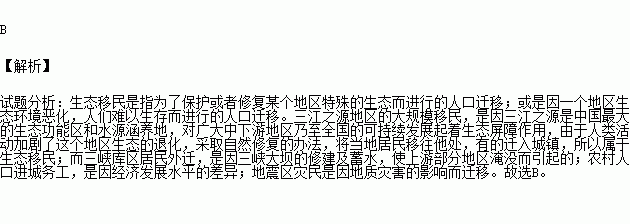 下列人口迁移情况属于生态移民的是