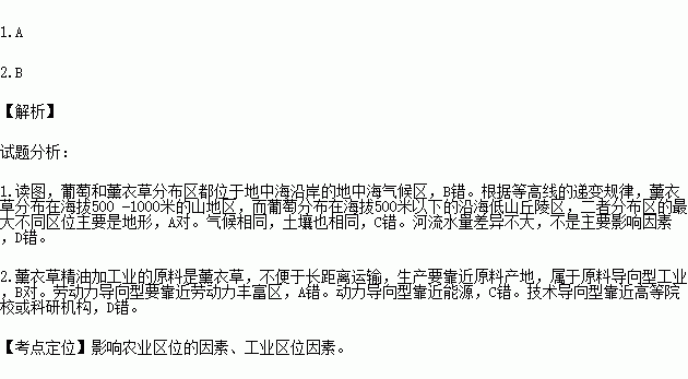 1.图中直接显示影响葡萄分布区与薰衣草分布区不同的主要区位因素是