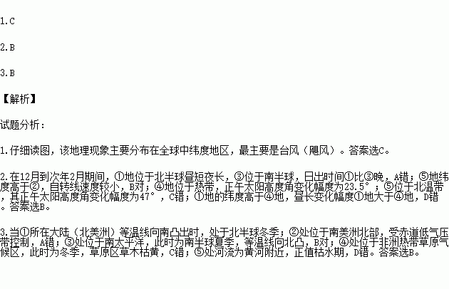 3.当①所在大陆等温线向南凸出时,下列叙述正确的是
