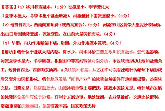 (3)阅读乙图,解释喀什地区地质作用的主要过程。