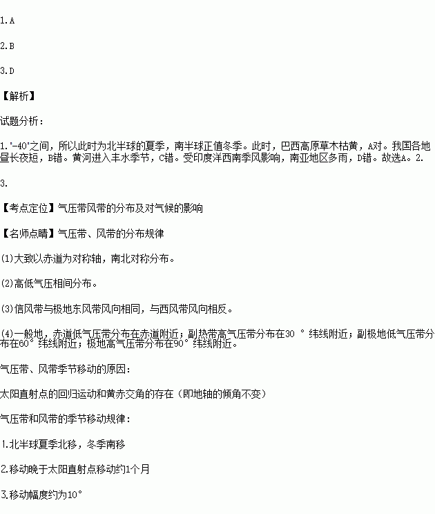 1.图示气压带位置反映的时段里