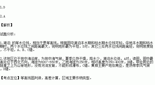 下图为地中海沿岸某地区等高线图。读图,回答下列各题。