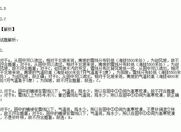 1.该山地南坡属于