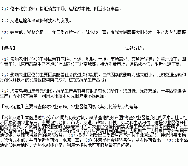 (2) 试从社会经济条件分析,是什么因素的变化促使海南岛成为北京蔬菜生产基地?