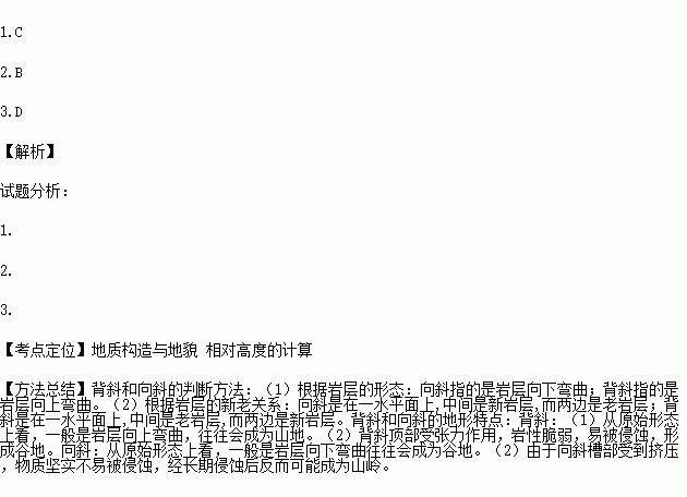 下图为某区域等高线地形(单位:米)与地质剖面图,读图完成下列问题。