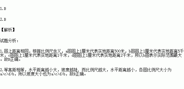 2.上面四幅图中等高距相同,则a、b、c、d四处坡度大小排列正确的是( )