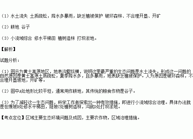 (2)A处地形比较平坦,通常用作 ,其传统的粮食作物是 。
