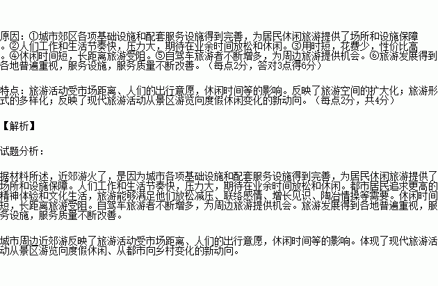 分析今年国庆期间,城市周边近郊游“火了”的原因及其反映旅游活动的哪些特点。